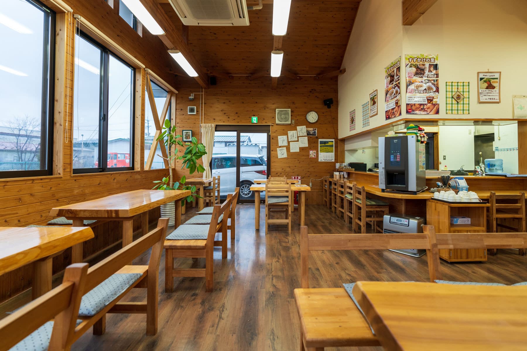 木が香る建物、さらには一枚板のテーブルやイスも和賀建設が手掛けました。